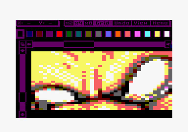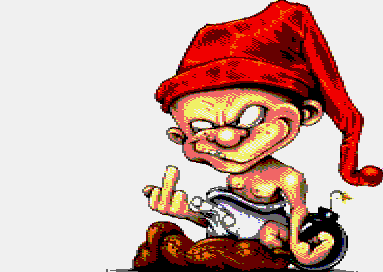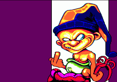 BARJACK à choisi sur son screen de d'effacé l'épingle à nourrice : c'est un détail difficile à faire rendre convenablement avec la résolution du mode 0 ( longue ligne et petit arrondi ) , bref BARJACK a choisi de zappé ce détail. Pour les faignace en utilisant les réglages RVB 100 110 140 sous ConvImgCPC , vous pouvez généré un dégradé de bleu sur les yeux et la couche plutot intéressant a inclure a votre transfert. |