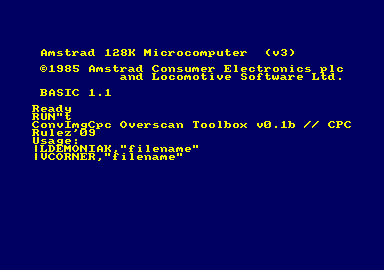 Sauvegarde de l'écran au format .SCR (option "compacté" de cocher) puis chargement sous l'utilitaire : ConvImgCpc Overscan Toolbox v0.1b