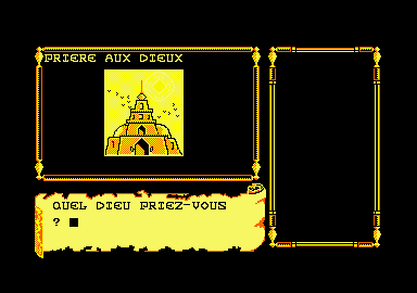 Après avoir choisi votre milieu et le type de votre gouvernement (Monarchie ou Conseil des Sages), vous devez vous efforcer d'obtenir une société stable ; pour cela, vous avez accès à plusieurs actions possibles que ce soit en politique intérieure (Economie, Autorité, Culture, Armée...) ou en politique extérieure, guerre économique, idéologique, d'annexion ou subversion, traités...). A vous d'être le plus judicieux possible dans vos choix, mais il est un facteur qu'il ne faut absolument pas négliger : l'aide des Dieux qui feront parfois des miracles ! Dans ce logiciel, le premier choc se situe au niveau du graphisme qui est tout simplement superbe ! Quant aux couleurs (tout un dégradé de jaunes et orangés), elles permettent de s'imprégner d'une atmosphère toute mythologique... Un cadeau de choix pour les adeptes de stratégie. CPC n°20 |