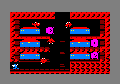 Not all the safes contain a clue and the ones that do change for each game, so most of them will usually have to be visited. Guarding the safes are various monsters in each room which sap ES's energy when they touch him. They move in patterns and can therefore be avoided with a little practice. However one room allows you to replenish energy and the rime limit that runs down. There are also a couple of instantly-deadly rooms from which there is no escape if you get caught by fire or water. When all the clues are obtained you can get a riddle, the answer to which reveals the murderer's identity, leaving you to return to the courtroom to complete the game. It won't take long to explore all the rooms but some of them are quite difficult and will keep you going for a while. The graphics are very flickery but the boogie-woogie music ('Johnny be Good') is excellent and plays throughout the game. May not take too long to crack but the murderer and riddle change each time so it's a lot of fun for only a little money. BW SECOND OPINION Great music, fun gameplay, but the graphics are unwatchable. 'Flickery' is putting it milddly - some screens judder so much you can hardly look at them. Shame, 'cos it's a nice game otherwise. AW |