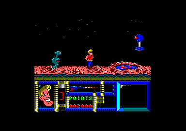Comme par hasard, la base ennemie se trouve située à l'extrémité opposée du satellite. Autant dire que la route est très, très longue et semée d'énormes embûches. Par expérience, je vous livre une petite rétrospective de tous les ennemis mortels qui peuplent la première partie de ce logiciel. Tout ce qui est Evitor est proprement à éviter comme son nom l'indique car un simple f rottement est mortel ! Si vous ne voulez pas être mangé tout cru écartez-vous des Antoids qui se roulent en boule pour passer à l'attaque. Quant aux Koptos et Serpos, ils sont aussi laids que dangereux (et ce n'est pas peu dire !) et pour ce qui est de la surveillance do la planète, je vous assure que l'on peut faire confiance aux robots vigiles et ce sont des voraces... Malgré toute cette petite vermine, ayant recouvré tous mes sens et toutes mes facultés, j'obtiens le code d'accès qui va me permettre d'entrer dans la base ennemie et de mettre au point mon évasion. Il y a pour cela trois actions obligatoires à remplir : obtenir le code du capitaine (non, non l'âge ne convient pas), charger l'énergie du vaisseau et, enfin, localiser les instructions qui permettront de commencer le saut dans l'hyperespace. Facile à dire mais pas facile à faire, me direz-vous... et vous avez raison ! Testé sur AMSTRAD CPC
