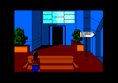 DES ICONES, TOUJOURS DES ICONES Le principe du jeu est assez original (du moins sur nos machines). Vous visualisez une page écran vous montrant l'endroit précis où vous vous situez dans l'aventure. En appuyant sur la barre d'espace, l'image laisse sa place à une autre page remplie d'icônes en tout genre. Vous avez alors le choix entre revoir la page écran, accéder au menu de sauvegarde ou utiliser les commandes du jeu. L'ensemble se déroule en deux phases. Vous choisissez une icône représentant l'action (examiner, prendre, poser... une bonne vingtaine dans l'ensemble) ; vient ensuite une seconde page d'icônes représentant les divers objets du jeu (une porte, le sol, un placard...). Sachez que cette deuxième série peut être rallongée par d'autres icones en fonction de votre évolution dans le jeu: L'idée de base est bien pensée. Par contre, en jouant (que dis-je: en jonglant...) avec ces différents tableaux, on perd assez facilement le nord, pour ne pas dire... patience !