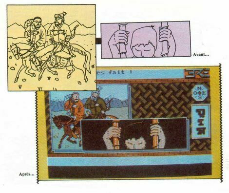 Commence alors la recherche d'une importante documentation sur la Chine de cette époque afin de pouvoir construire un scénario sur quelque chose de concret ; vous pouvez noter que nous sommes en mars 1987 et que la première ébauche est prête en juin. Le scénario complet est achevé ; il reste à définir les images ce qui n'est pas une mince affaire... Pour cela, il y a les feuilles de scénario qui présentent de façon claire et nette le n° de la scène, le n" de l'image, le nom de l'image et les actions qui doivent être effectuées. Vous comprendrez la minutie qui doit être réservée à cet aspect quand vous saurez qu'il y a au moins 130 images ! ALORS, LES OUTILS INFORMATIQUES ENTRENT EN SCENE... Tout le travail de préparation étant terminé, Jacques dessine chaque image sur des feuilles de papier calque. C'est à ce moment qu'intervient Ludovic. En effet, il écrit tous les utilitaires graphiques nécessaires ; nous tenons à préciser que par souci constant d'amélioration, tous les utilitaires sont réécrits d'un logiciel à l'autre... Chaque dessin de Serge est alors passé au scanner puis rempli de couleurs avec les utilitaires de Ludovic et enfin compilé. C'est alors qu'intervient Jacques ; lui, c'est la programmation à proprement parler. Il n'est pas resté les bras croisés pendant tout ce temps, loin de là, puisqu'il a déjà décortiqué l'analyse syntaxique du scénario qu'il veut de plus en plus souple... Comme vous pourrez le constater par vous-même, Qin est constitué de 3 phases ; lorsque la lerc phase fut terminée, elle s'est gentiment retrouvée dans les mains de Jacques qui a mis 1 mois pour l'intégrer !