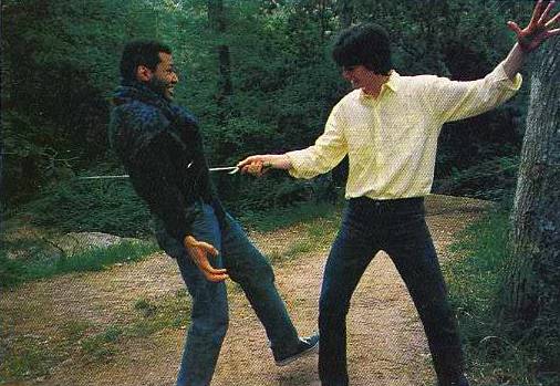 Arrivée donc un samedi après-midi. Déjà, pour trouver le parc du château ce n'est pas si facile, mais une fois dans le parc pour trouver le château lui-même, c'est encore pire. C'est grand 270 hectares ! Et pas la moindre buvette à l'horizon, évidemment ! Finalement, on arrive au château qui me semble très suspect C'est un château hanté ça, et pas par Maître Kanter malheureusement! Je gare la voiture dans le sous-bois et, à peine descendu, j'entends un cliquetis métallique qui semble venir de derrière les arbres en s'éloignant du château. J'y vais en descendant un chemin et je tombe en arrêt sur an spectacle irréel : au bord d'un petit lac dominé par un Christ en croix (on est en Bretagne), deux hommes se battent à l'épée ! Ubi a-t-il mis au point un nouveau soft qui permet le voyage dans le temps (à Ubi vaillant, rien d'impossible) ? Je ne pouvais pas avoir d'hallucinations, j'avais à peine bu quinze bières donc j'étais quasi à jeun... Soudain le plus jeune des deux combattants embroche son adversaire qui s'écroule a terre en gémissant, se tenant le ventre. Le vainqueur se tourne alors vers moi: