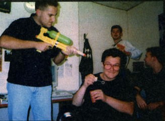 Welcome to Sheffield, the fifth largest city in Britain, on the day the new city centre one-way system comes into effect. All around confused drivers stare at traffic lights wondering what's going on. Meanwhile in “one of the roughest areas of town", Bizarre Developments - aka Richard Stevenson, Paul Bellamy, Mick Lister and Steven Kirby -continue their task of programming groovy games based on popular television cartoon characters, in between having big water pistol fights and telling lots of jokes we couldn't possibly repeat here. Paul, Bizarre's graphics guru, seems to like the Amstrad. I really enjoy doing the graphics for the CPC," he enthuses. “Compared to the C64 and Speccy they're much more colourful and better defined. Many people port over the graphics from the Spectrum to the Amstrad. We port the graphics over from the C64 and then spend a lot of time doing them up and adding more colour, so the graphics really are better on the Amstrad than on any other format." Paul flashes up on screen the sprites of Popeye from the CPC and C64 versions of Popeye 3 to prove his point. “On the C64 he's made up of only three colours, with a black top, blue trousers and pink body. But on the Amstrad he's a perfect representation of the character, with blue cuffs, yellow buttons, a brown pipe and so on. To do it with all the right colours on the C64 would mean drawing six different sprites. It would be a nightmare. But on the Amstrad it's really simple. “A lot of people take the easy option of a 4-colour Speccy port, but we've got a special way of doing a full colour CPC game that looks and plays really well. It's the same resolution as the C64 but with nicer colours. The Amstrad version of a Bizarre game always tends to end up being the best looking version." Richard nods his cropped head in agreement. “All the games Bizarre have ever done have come out on the Amstrad. I think that with Bangers and Mash [Bizarre's most recent game] the Amstrad version was the best version overall, graphics and playability combined. I think that's probably true of quite a lot of our games." It's obvious that Bizarre love the CPC, but what else do they love? Paul: My wife Angela, the drink Metaxa, the film Alien. Richard: Girlfriend Christine, Coca-Cola, the band Torq. Steve: Katharine, RPGs, Black Russians and Highlander. Mick: Dawn, my Fiesta XR2, Blade Runner, anything alcoholic. Some massive water pistols appear. These guys are very much the 'wackiness department1 of Alternative Software. But it's time to bid farewell to the Bizarre posse, now busy rummaging through each others drawers, and return to Sheffield's brand new (and surprisingly efficient, actually) one-way system. Er, no hang on, the station's back that way isn't it?... But we can't go that way... What's this, a double carriageway?... We've been driving a long time... What did that sign say?... Hang on... er... 'Welcome to Bradford'. Erm...