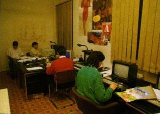 Matar marcianos, descubrir el tesoro oculto de un castillo repleto de espectros, dragones y centinelas o introducirse en un barco fantasma a la busca de ciertos planos secretos. En la otra cara de la moneda las rutinas, los menús y meses de trabajo para dar vida a un proyecto surgido de la imaginación del programador. Son ellos, los programadores de Zafiro, el equipo de una empresa que trabaja contra reloj, creadores ajustados a un horario porque, al final, siempre hay que ceñirse a las reglas de otro juego, un juego que se llama Mercado. CADA vez más, las empresas distribuidoras de software buscan integrar su propia cantera de programadores, personas que no sólo adapten las producciones extranjeras, sino capaces de crear adaptándose a las exigencias del público y del negocio. Este es el caso de Zafiro Software, una empresa dedicada en exclusiva a la distribución de juegos y programas, principalmente de origen extranjero. En enero del 88 Zafiro apostó por un nuevo proyecto, la experiencia de formar su propio equipo de programación. El recién estrenado deépartamento, cuya organización se encargó a Miguel Angel Fernández, comenzó a funcionar en febrero y hoy cuenta con cinco personas en plantilla: el propio Miguel Angel, programador y coordinador del equipo; Francisco J. Fáfula (en la actualidad en Dinamic), programador; Miguel A. Subía, programador; Francisco J. Cervera, también programador, y César Jiménez, grafista, además de contar con el trabajo esporádico de programadores independientes, como Oscar Gallego, programador y grafista. Miguel Angel admite que trabajar con un volumen de trabajo y un sueldo fijo, respaldados por la seguridad de una gran empresa, son las ventajas de programar en un equipo; sin embargo, la situación a veces no es tan idílica: «No siempre puedes hacer lo que te gustaría ni dedicarle el tiempo necesario a un juego interesante, pero, tal vez, demasiado complicado.» Su peor enemigo es el tiempo, ese factor que les obliga a cambiar la clavija y dejar a medias el juego que tengan entre manos para emplearse a fondo en uno nuevo más urgente.