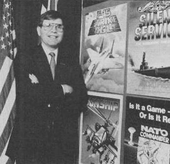 Following last month's deal with Origin, Microprose has signed up with Suncom, to distribute its range of joysticks and peripherals, including monitors and accessories such as disc storage cases and printer stands Major Bill Stealey of Microprose with some of the company's “controversial" products