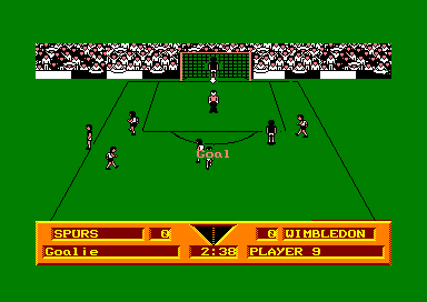 UN REVE Vous êtes entièrement libres de choisir entre coupe et championnat, de construire, si le cœur vous en dit, une super équipe avec les plus grandes vedettes mondiales, à la hauteur de vos rêves. Vos joueurs ont, dès le début du jeu, leurs propres caractéristiques, comme la puissance de tir, l'habileté au dribble, etc. Au fur et à mesure de leurs évolutions durant le championnat ces caractéristiques seront modifiées, en mieux ou en pire, selon leurs résultats. Alléchant certes ! Mais le jeu dans tout ça, hummm ? Hélas... D'abord le terrain. Selon l'endroit où se passe le jeu, il y a trois vues différentes du terrain. Celle du milieu, qui est une vue latérale, et celles des extrémités du terrain, en perspective, avec comme décor les deux buts, garnis de leur gardien et entourés du public, qui attend avec impatience de voir le ballon au fond des filets.