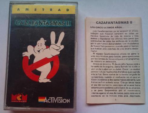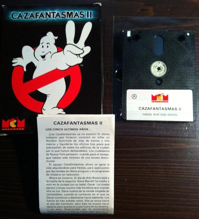 Inspirado directamente en la película de reciente estreno, el juego reproduce tres escenas de ésta: el pozo, Brodway y el Museo. Nada más cargar el juego podemos observar una bonita puesta en escena con los créditos desfilando por nuestras pantallas. Tras eso comienza la música del juego (que es verdaderamente buena) y en cuanto pulsemos una tecla, aparecerá la primera escena. En el pozo debemos bajar eludiendo los peligrosos monstruos y las manos que surgen de la pared, y recogiendo a la vez los objetos que se encuentran en las plataformas que iremos encontrando. Podemos disparar a los bichos que encontremos (todos son malos) y procurar no perder demasiado coraje, pues si nos quedamos sin él nos caeremos del cable. Lo perderemos cada vez que nos toque un fantasma y lo recuperaremos cogiendo las botellas que encontraremos en el pozo. En la segunda fase pasearemos con la Estatua de la Libertad por las calles de Nueva York. Tenemos un tiempo determinado y debemos proteger a la estatua de los fantasmas. Cuando éstos la loquen, perderá un poco de barro, acabando (y perdiendo) la partida cuando se acabe éste. La bola de fuego que controlamos se convertirá en barro y caerá al suelo cuando choque con un fantasma, desde donde los peatones podrán cogerlo para devolverlo a la estatua. Por último, en el Museo debemos rescatar al bebé (hijito de Sigoumey Weaver) y destruir a Vigo el Cárpato. En esta fase controlamos a todos los Cazafantasmas y tenemos a nuestra disposición varias armas. Todo esto y el que sea la última fase hace prever una gran dificultad en el rescate del mocoso y por si fuera poco, tenemos un tiempo limitado. Las fases como se puede ver, son originales, y aún quedan en el aire algunos detalles por comentar. El caso es que la dificultad y la excesiva longitud de las fases hace perder al juego parte de su atractivo. En cuanto a la parle técnica, nada que objetar: buenos gráficos (en la presentación en disco hay gráficos digitalizados de la película), buen movimiento, excelente sonido (sin duda alguna lo mejor del juego) y una ambientación casi perfecta. En definitiva el único inconveniente es la dificultad.