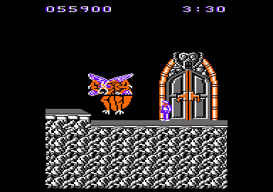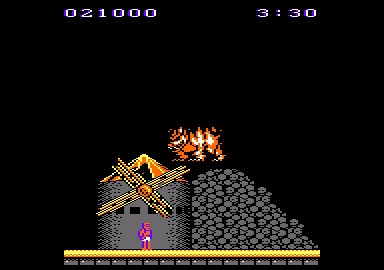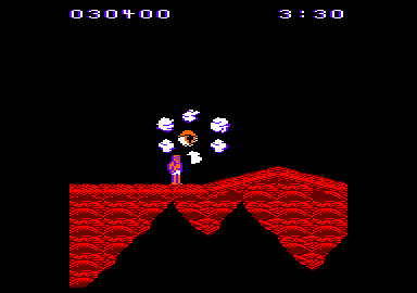 TRISTE SIRE... Il était une fois un preux chevalier dénommé Arthur... Dans Ghosts'n Goblins, Arthur avait réussi à repousser Loki, le Maître du Mal, qui tentait d'investir le territoire de Lexet. Mais voilà que, dans ce nouvel épisode, Loki tente à nouveau de s'emparer de Lexet ! Il paralyse ses habitants à l'aide d'un sort magique et kidnappe la princesse Tamara (non, ça ne se mange pas !). Quand Arthur entend les cris de détresse de celle-ci, il reprend les armes et part immédiatement à la recherche de Loki pour le détruire. A vous de jouer... Et bonne chance ! CHAUDE AMBIANCE ! La topographie générale de Ghouls and Ghosts n'a r rien de très original ! De longs tableaux, horizontaux pour les trois premiers et multidirectionnels pour les trois derniers, tous terminés par un monstre de fin. Là où cela devient nettement plus intéressant, c'est qu'une fois le dernier monstre détruit fie monstre des mouches), vous ne pourrez pas affronter Loki tout de suite : le jeu vous renvoie au tout début ! Et c'est reparti pour un tour ! Mais cette fois, vous trouverez sur votre chemin une arme magique : les boules de feu. Après vous être retapé tout le parcours, en possession de cette arme magique, vous aurez l'autorisation d'affronter le Maître du Mal ! Si vous le terrassez, votre quête arrivera enfin à son terme et vous retrouverez la princesse saine et sauve. la lave et les tremblements de terre du level 3, les longues langues de monstres du level 4, les cristaux géants et la pente glacée du level 5 et, pour fînir, le château de Loki !