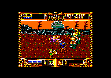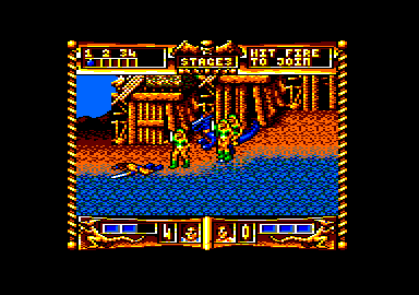 Le célèbre Golden Axe enfin adapté sur CPC a le mérite de respecter presque intégralement la version originale. La musique d'introduction m'a tout de suite rendu sympathique cette conversion, mais la première confrontation avec le jeu m'a incité à la méfiance vis-à-vis de ses performances. Par souci d'objectivité et par fierté, je me devais de vaincre les premiers monstres du jeu et.. O surprise ! CONVERSION COLOREE Les programmeurs ont préféré privilégier la couleur à la finesse des graphismes. Les seize couleurs (mode 0) utilisées offrent donc de larges compensations visuelles, particulièrement saisissantes au niveau 5. Ainsi, malgré la basse résolution graphique, la page de changement de round, par exemple, est remarquable.