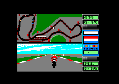 QUANT A LA CONDUITE... Elle se révèle étrange. Etrange mais pas chiante. Si vous voulez, le côté simulation pure est assez délaissé au profit d'une conduite moins technique mais plus agréable. Accélérations, freinages et virages s'effectuent de façon correcte et la sensation de vitesse est très bien rendue. Tellement bien d'ailleurs que lorsque vous vous penchez pour prendre un virage un tant soit peu serré, ce n'est plus un freinage qu'il vous faut effectuer mais carrément un arrêt net, arrêt rendu possible (de 300 km/h à 25 km/h en 0,0786 seconde) lorsque vous appuyez sur Fire (ou shift au clavier) lorsque vous freinez. Un peu bizarre comme conduite au début mais on s'y fait, et on apprend vite à modérer les réactions de sa moto. Autre chose concernant la conduite : il n'y a pas de compte-tours. Vous ne pouvez donc pas jouer avec les vitesses lors de certains passages délicats sur certains circuits. Dommage, mais on gagne ainsi en facilité d'utilisation. En ce qui concerne l'aspect esthétique du jeu, les décors sont dépouillés afin de privilégier la vitesse. Il fallait faire un choix et je crois qu'en l'occurrence ce choix a été judicieux : un jeu de moto (je dis jeu et pas simulation parce qu'à mon avis ce soft fait plutôt partie de cette catégorie) DOIT posséder cette qualité qu'est la sensation de vitesse. Les sprites des motards sont bien réalisés, et les collisions bien gérées. A noter, à ce propos, une amélioration par rapport à GP 500 : lorsque vous vous crashez, vous ne vous enflammez plus en attendant 5 minutes avant de pouvoir repartir. Maintenant vous chutez simplement et vous vous remettez immédiatement sur votre destrier à deux roues sans perdre de temps. Un détail ? Peut-être mais de taille. Si vous êtes du genre à vous viander à chaque virage, vous me comprendrez. Nous voilà donc devant ce qui est, à mon avis, la meilleure sim... pardon, le meilleur jeu de moto sur CPC. Et bien mieux que GP 500 premier du nom, il ravira tous les fanas de sports mécaniques (et de CPC). Chris' |