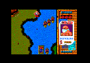 Une règle bestiale pour un jeu pourtant riche en ambiance et en écrans bien sentis : cinq phases, d'abord dans une ville de western typique, puis à la gare (il faut attendre un train malgré une demoiselle très habile au pistolet...), puis dans un canyon infesté d'indiens hargneux. Vous descendrez ensuite un "rapide", escorté par des crocodiles et d'autres indiens. Enfin, vous arriverez dans un pré où l'impitoyable Barbegrise cherchera à vous dévorer tout cru... Ainsi, à chaque fin de phase, vous êtes contraint d'affronter un super-bandit qui, comme dans certains jeux d'arts martiaux, a des pouvoirs particuliers (couteaux, bombes, etc). Bref, on ne s'ennuie pas, on meurt sans arrêt, et on recommence. Les créateurs du jeu ont su faire preuve de beaucoup d'humour, sans pour autant sacrifier la pureté de l'action. Un excellent programme, idéalement nerveux et marrant. J.M.M. - MICRONEWS n°19