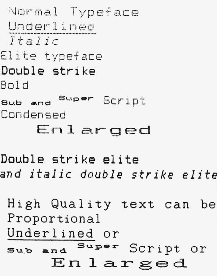 This confusion inevitably means that far too few software packages provide NLQ options for printout and Amstrad has sensibly provided both a fairly easily accessible set of dip switches and a front panel button to press at power on which will set the printer automatically into NLQ mode. The front panel controls of the printer are good if not superb. Easy to reach options allow you to send a line feed, reverse line feed, form feed, run a printer test routine One of the nicest features of the Amstrad PCW printers is their ability to ‘mix and match' print styles. For instance they can produce NLQ condensed print, NLQ enlarged print, bold NLQ, etc. It is much more common for many of these print styles to be mutually exclusive, which obviously greatly reduces their flexibility. The 4000 is no exception - NLQ print can be underlined or printed as sub- or superscript but little else. Proportional NLQ characters are possible but cannot be mixed with any other print features. There is an option for italic NLQ but you first have to be in, or switch into, Epson mode. It is a nice point of the 4000 that this switch can be software controlled, since many printers require you to turn the printer off and reset the dip switches. Even so it is a procedure that few software packages will anticipate. The Epson mode also has to be chosen to print the '£' sign or some other 'foreign characters'. Clever word processors such as Protext can be defined to produce bold NLQ by overprinting parts of the text twice. The print quality of the 4000 is generally good, with the exception of the 'i', 'W' and ‘V' characters which look slightly odd in high quality mode.