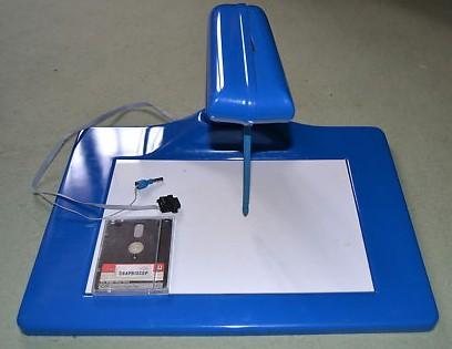 Vous vous souvenez sûrement de notre banc d'essai, de la Graphiscop, seule tablette graphique française pour micros familiaux. De conception radicalement différente de sa concurrente anglaise Grafpad, Graphiscop est commercialisée par MMC International. Aujourd'hui, MMC nous présente sa nouvelle version. En janvier 86, sur Amstrad, une tablette graphique française est commercialisée : la Graphiscop. Cette première tablette, pourtant d'un prix relativement élevé pour le budget d'un hobbyiste, est construite en grande série et remporte déjà un vif succès auprès du public qui voit en elle un outil efficace de création graphique, à mi-chemin entre les logiciels de dessin "classiques" (avec joystick ou souris) et les tablettes professionnelles coûtant plusieurs centaines de milliers de francs. Il est vrai que la Graphiscop révolutionne la création graphique sur Amstrad. De nombreux professionnels ne s'y trompent pas et se lancent à leur tour dans l'aventure. Travaillant en mode 0, avec des grosseurs de pinceaux allant jusqu'au simple point (en 27 couleurs), Graphiscop est utilisée par différents professionnels (Ere Informatique/Gasoline Software), par des illustrateurs, comme José Torrès (vous le connaissez bien : c'est notre dessinateur de couverture préféré !). L'un des points forts de la petite société MMC est d'être toujours à l'écoute de son marché et de ne pas hésiter à mettre en application les suggestions données par les utilisateurs et à chercher des solutions aux remarques des détracteurs. Ainsi, après environ six mois d'existence, sort une nouvelle Graphiscop, au look résolument design mais qui ne se contente pas d'être un recarossage pur et simple de la précédente. Description Ce qui frappe d'abord, c'est l'aspect de l'appareil. Il fait plus professionnel, donne une grande impression de solidité. En fait, la tablette est désormais composée, à la livraison, de deux éléments principaux en plastique moulé de couleur. Le nouveau modèle évite ainsi absolument tout montage mécanique qui pouvait exister sur le premier modèle. Il n'y a donc plus ni vis, ni écrou, ni réglette... seulement deux éléments principaux qui s'emboîtent (étroitement et solidement). L'ensemble gagne donc surtout si l'on considère que la potence supportant le stylo est plus basse de six cm, en rigidité. Le premier modèle comprenait des fils apparents à connecter, un boîtier d'interfaçage indépendant et externe ; ce dernier est maintenant intégré à la tête de la potence (qui possède une fenêtre suffisante pour pouvoir effectuer, le cas échéant, des réglages sur les quatre potentiomètres) et seuls sortent, à l'arrière, les deux fils nécessaires au fonctionnement : alimentation (le concepteur a d'ailleurs pensé à mettre désormais une prise mâle/femelle qui permet de brancher une souris, par exemple, sans avoir à débrancher la table) et le connecteur du port joystick. Une autre grande amélioration est la suppression du bouton poussoir (pour valider les actions) sur la tablette elle-même. Ce poussoir est maintenant incorporé au bout du stylo suspendu – qui, mentionnons-le pour les détracteurs, n'a plus rien d'un "Bic" –. L'utilisateur peut donc valider et dessiner d'une seule main. Pratique et efficace. Le "jeu" qui pouvait exister dans le montage du mécanisme du stylo a complètement disparu et l'appareil a donc encore gagné en précision. La tablette – blanche – de travail est amovible et même réversible (un côté brillant et un côté mat). L'avantage de l'emboitage des deux pièces maîtresses est le montage et démontage de la tablette en moins d'une seconde, ce qui rend plus aisé le rangement d'une tablete quand même encombrante (de plus chaque élément, totalement indépendant, peut être rangé séparément).