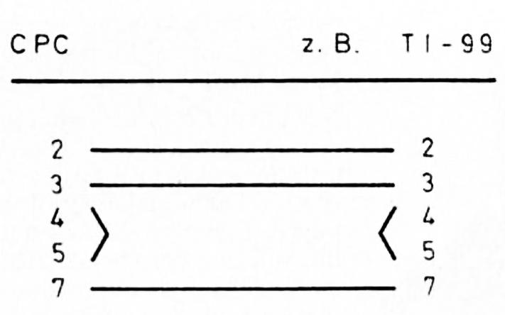 Auch der 6128 ließe sich anschließen, wenn man über ein entsprechendes Adapterkabel verfügte (kommt vielleicht noch). Nur für Techniker Die mitgelieferte Dokumentation der Schnittstelle umfaßt drei Seiten. Neben kurzen Hinweisen zur Installation finden technisch Vorbelastete den Belegungsplan des seriellen Anschlusses, Vorschläge zum Anschluß eines Modems oder eines anderen Computers, die Portadressen, den Schaltplan und die Registerbelegung des Z80-STI. Hardware-Laien, die vielleicht nur einen seriellen Drucker oder einen Akustikkoppler anschließen wollen, sind aber verloren (nach dem Motto: ‘Data Becker wird's schon richten'), da die verwendete Fachsprache allenfalls für Profis verständlich ist. Letztere werden wiederum vermissen, daß nicht das vollständige Datenblatt des Chips abgedruckt wurde. (Mehr über den STI finden sie in c't 7/84.) Ebenfalls in der Anleitung findet sich ein kurzes BASIC-Listing und dazu die Bemerkung: 'Mit diesem Programm und einem Akustikkoppler kann schon ein einfacher Mailboxbetrieb gefahren werden.' Ein Akustikkoppler stand leider nicht zum Test zur Verfügung, wohl aber ein in Ehren ergrauter TI-99/4A mit Interface-Karte. Also wurde schnell nach dem Belegungsvorschlag in der Anleitung ein Interface-Kabel gebastelt. Kurzdaraufkamdie Erzugspunkt nimmt, kann eigentlich nichts mehr falsch machen - bis darauf, daß er die Leitungen TXD (Transmit Data) und RXD (Receive Data) wie angegeben kreuzt. Sobald man die drei verwendeten Pins 2. 3 und 7 parallel miteinander verbindet, klappt es zumindest beim Anschluß an den TI-99 (siehe Bild). Tatsächlich funktioniert das kleine BASIC-Programm einwandfrei sofern man nicht vorhat, weitere Funktionen wie Diskettenspeicherung und Druckerzugriff zu implementieren oder gar die Übertragungsgeschwindigkeit von 300 Baud zu erhöhen. Der Z80-STI selbst verkraftet viel höhere Geschwindigkeiten. 1200 Baud zum Beispiel werden auch von manchen Mailboxen gefordert, und bei der direkten Verbindung zweier Computer über ein Kabel wäre durchaus noch mehr drin. Terminal-Software extra Doch dafür sind die Assembler-Programmierer unter den Schneider-Besitzern gefordert. Ein trauriger Hinweis: Die bereits im AMSDOS-ROM enthaltenen Systemroutinen zum Betrieb einer seriellen Schnittstelle sind unbrauchbar, da sie auf einen 8253 in Kombination mit einer Z80-SIO zugeschnitten sind. Da stört es kaum noch, daß sie ganz andere Portadressen ansprechen. Das ist natürlich ein sehr unglücklicher Zustand, da die ganze schöne und anscheinend recht leistungsfähige Treiber-Software im EPROM für die Katz ist. Alle, denen das Seiberprogrammieren zu mühsam ist. können auf die von Schneider selbst angebotene Terminal-Software zurückgreifen. 'Terminal-Star' heißt das Programm (49 DM) und wurde nicht etwa bei Schneider selbst entwickelt, sondern von der Firma Star-Division. 'Software-OEM' müßte man das wohl nennen.. . Was diese Terminal-Software leistet, wird jetzt aber hier nicht weiter ausgeführt, sondern ist Gegenstand einer eigenständigen Software-Review (vorgesehen für die nächste c't). Fazit Die serielle Schnittstelle funktioniert einwandfrei. Sie ist damit für alle üblichen Aufgaben wie Betrieb von Akustikkopplern, seriellen Druckern und auch Datenübertragung zu anderen Computern per Kabel ohne Einschränkungen geeignet. Der ausgezeichneten Hardware steht aber zur Zeit das praktisch vollständige Fehlen von Software gegenüber. Wer also nicht allzuviel Ahnung von Maschinensprache hat, sollte entweder die Finger davon lassen (wäre schade), sich jemanden suchen, der die passende Software dazu schreibt oder die Entwicklung auf dem Software-Markt abwarten. Hier kann sich ein Preisvergleich (Schnittstelle, Terminal-Star, Akustikkoppler) mit den diversen Komplettangeboten durchaus lohnen, wobei sich allerdings die Schneider-Schnitt-steile selbst mit 113 DM durchaus sehen lassen kann.