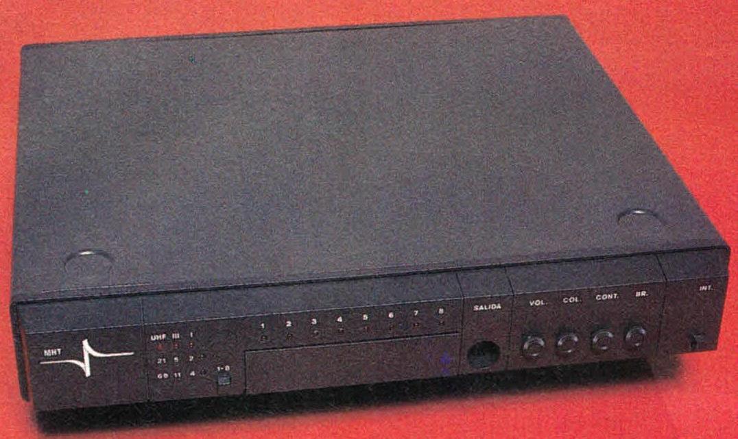 Conservando la misma línea sobria marcada por sus últimos productos, MHT vuelve a sorprendernos con un nuevo periférico que consigue un nuevo aprovechamiento de nuestro ordenador como TELEVISION. esde que el Home-Computer fue tal, todas las marcas aprovecharon los televisores domésticos como saludable medida para la reducción de costos en el equipo. La llegada de Alan Sugar al terreno de la microinformática cambió totalmente las limitaciones establecidas hasta la fecha, incluyendo un monitor en el equipo a un precio altamente competitivo. Ahora MHT ha arremetido con acción inversa: convertir el monitor del ordenador en un televisor. A fin de cuentas, si hemos hecho una inversión en un monitor, ¿por qué no sacarle todo el partido? El equipo consiste básicamente en una caja negra, perfectamente diseñada para ser colocada debajo del monitor, con el conseguiente ahorro de espacio. Las únicas precauciones y mantenimiento necesario es no exponer el aparato al calor ni la humedad y desenchufarlo cuando no vaya a ser utilizado durante algunos días. Conexión del convertidor C-10 La conexión del equipo es muy sencilla y se realiza en menos de medio minuto. Para realizarla basta con enchufar el conector de cinco patas que sale del monitor al aparato, la antena a la toma trasera incorporada en el equipo y el enchufe del C-10 a la red. Una vez realizadas las conexiones y activada la corriente habrá que sintonizar el convertidor. El número de presintonías que dispone es de 10, lo cual es más que suficiente si consideramos que a lo sumo necesitaremos cuatro: una para TV-1, otra para TV-2, otra para el canal autonómico y una última para el vídeo, siempre y cuando, naturalmente, dispongamos de éste. Para sintonizar estos canales basta con girar los diales correspondientes, tal y como se realiza con cualquier televisor doméstico. Es obvio Dado que el monitor del Amstrad no incorpora altavoz, el equipo dispone de uno interior, con una potencia sonora muy alta tanto en volumen como en calidad. Para los más técnicos, el convertidor trabaja bajo las normas del CCIR y sistema de color PAL disponiendo de tres bandas de frecuencia, I, IIl y UHF. En la salida de un vídeo se dispone de una señal normalizada tipo vídeo compuesto con una amplitud de 1 V pp. Esta señal se puede utilizar tanto para reproducir como para grabar, para lo que bastará con cambiar el conmutador de modo, situado en la parte trasera, a la posición de salida. El conector tipo JACK que sale del monitor no es necesario conectarlo en ningún sitio, así que nadie se pregunte dónde demonios ponerlo y mucho menos conectarlo a la toma lateral de 12 voltios que tiene el propio monitor. La información visual que nos proporciona el aparato se basa en LEDS; dispone de seis indicadores en color rojo que informan sobre la situación del equipo, ON/OFF, banda elegida, canal seleccionado... El indicador de dial le da una orientación de la zona de banda que está sintonizando; si estuviese sintonizando la banda I y el piloto, que indica este dial, se encontrase más encendido significaría que se encuentra más cerca del canal 2. Y así para cada una de las restantes sintonías. A parte de estos controles más o menos sofisticados, el equipo dispone de los clásicos que pueden encontrarse en un televisor: brillo, contraste, volumen y color. En la parte trasera, ¡unto a la toma de antena, se encuentran dos conexiones para la entrada y salida de audio, lo que nos permite conectar el equipo a un amplificador logróndose una calidad y un volumen muy superior. Estos mismo conectores son indispensables cuando queramos realizar una grabación en vídeo, a no ser que prescindamos del sonido y queramos grabar una película muda. En resumen, la iniciativa de MHT de comercializar este, me atrevo a llamar, periférico, constituye una brillante idea ya que por un precio casi ridiculo, unas 20.000 pesetas, tenemos la posibilidad de disfrutar de un televisor completo en color, o en fósforo verde claro.