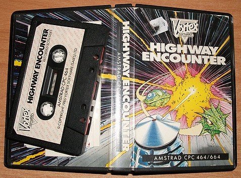 En 1985 HIGHWAY ENCOUNTER fait parler de lui. Je me souviens avec émotion de cette époque où j'achetais encore HEBDOGICIEL ... (observons une minute de silence pour la disparition d'un grand !). Stop. Revenons plutôt au soft qui m'a précipité dans la spirale infernale du jeu. En ce temps là, je n'avais pas de micro, ou tout du moins. J'avais-je pas encore mon CPC. C'est à cette époque donc que j'entendis., ou plutôt que je lus dans l'HHHEBDO qu' HIGHWAY ENCOUNTER. un jeu tournant sur ZX SPECTRUM était complètement fabuleux et que son imminente "adaptature" sur CPC ne l'était pas moins. Le leu étant moins cher que le CPC, je me décidai à l'acheter en premier. Logique, non ?