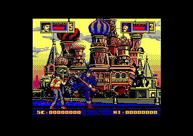 Je ne rencontre pas trop de problèmes avec elle d'autant plus que je suis arrivé dans cette ville en pleine forme avec l'obligation encore une fois d'anéantir 3 fois mon adversaire avant de pouvoir progresser (si j'étais arrivé fatigué, il aurait fallu que je le terrasse 4 fois). Par contre, je dois dire qu'il en a été tout autrement avec ma seconde rencontre ; en effet, il y a eu un sérieux choc avec Helga qui a, c'est le moins que l'on puisse dire, des arguments de choc... Même en arrivant avec toutes mes capacités, j'ai eu du mal à ne pas perdre définitivement la tête. Et pourtant, je n'en suis encore à ce stade qu'au début de mon périple ; avant de pouvoir crier victoire, il va encore falloir me rendre à Barcelone pour affronter Miguel et son taureau Brutus avant de continuer en Allemagne où m'attend Franz. Mais ma route ne se terminera que lorsque j'aurai eu raison des terroristes qui se trouvent bien entendu à Beyrouth et qui sont fermement décidés à ne pas me faire de cadeau... Edité par : US GOLD AMSTAR&CPC n°32 , Avril-Mai 1989 |