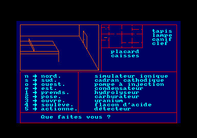 De l'Egypte antique au Far West en passant par bien des épreuves vous êtes en quête du précieux uranium capable de réparer votre machine à voyager dans le temps.A vouloir jouer les apprentis sorciers de l'espace et du temps dans une machine infernale mal réglée, vous vous retrouvez dans la Vallée des rois, en 1775 avant J.-C. à trois heures du matin avec un transporteur déglingué et en panne sèche d'uranium. Sans guide vous vous aventurez dans une pyramide à la recherche du fameux métal. Pas de compteur Geiger, mais des puits mortels, des serpents irascibles, des portes closes et des impasses partout. Rien que de très classique donc. Deuxième étape sur la route du présent : le Far West. Toujours pas d'uranium mais quelques dollars en poche pour faire des emplettes couleurs locales : revolver, cartes truquées, dynamite et tabac. Débrouillez-vous pour faire sortir de prison le bagnard, docteur es coffres-forts. L'uranium repose dans un des coffres de la banque. De la dernière étape nous ne dévoilerons rien si ce n'est pour dire qu'on y accède qu'après avoir résolu dans un même Jeu les deux premières et qu'elle se présente sous une forme entièrement différente. Mystère. Un jeu qui souffre des graphismes rudimentaires et qui met longtemps à démarrer. Chose appréciable, les commandes sont en français. (K7 Cobra soft pour Amstrad et Oric.)