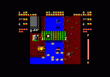 Otro de los esperados para estas fechas Ikari Wa rriors es un buen juego que hará las delicias de unos y será la desesperación de otros. Y es que con estos juegos o te sientas dispuesto a todo o mejor que no te pongas a jugar. Este es un juego tipo Commando. crea violencia por doquier y unas grandes ansias de matar, de acabar con todo lo que se interponga en tu camino, ya sean soldados o fortificaciones Por cierto, nuestros enemigos vieron la película de Rambo y se han puesto muy duros, nos atacarán con bazookas, tanques, lanza granadas. etc. En fin. un enorme ejército al que te tendrás que enfrentar sólo o con un amigo, juntos luchando contra el mismo enemigo, uno con joystick y el otro con teclado Podrás disparar, lanzar granadas, ir por el agua e incluso capturar un tanque y ponerte a repartir bombazos contra todo lo que se atreva a moverse Ikari Warriors es un juego con buenos gráficos El movimiento es un poco lento pero con un scroll continuo en el que el nivel de desesperación puede llegar a ser muy alto Necesitarás de muchas horas. pero podrás dominarlo i ¡Zafarrancho de combate!! Amstrad Acción |