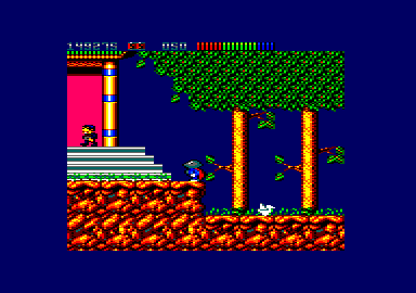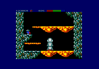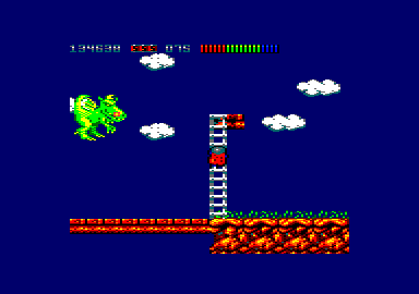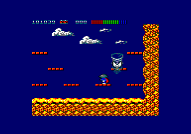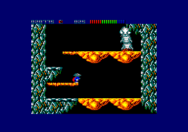 Monty Mole est une petite taupe à la bouille marrante, qui a déjà vécu quatre aventures désopilantes: Wanted Monty, Monty is innocent, Monty on the Run et Auf wiedersehen Monty de 1984 à 1987. A ma connaissance, seuls les deux derniers volets ont existé sur CPC. Depuis trois ans, plus de nouvelles de Monty. Effectivement, celui-ci s'était retiré sur une île des Tropiques, profitant d'un repos bien mérité au terme de sa vie aventureuse. NOUVELLE MISSION Maintenant, accrochez-vous bien, je vous énonce le scénario du jeu: Monty, atteint d'une crise de farniente aiguë, se prélasse au soleil, lorsque... Soudainement enveloppé d'une lumière très intense, Monty est téléportéà bord d'un vaisseau spatial. Des extra-terrestres ayant eu vent de la témérité de la petite taupe, l'investissent d'une mission incroyable: vaincre les cinq gardiens, ceux-là même qui leur ont dérobé les manuscrits sacrés, ingrédients indispensables à la survie de leur planète. Scénario loufoque pour introduire le fait que Monty va traverser quatre mondes différents, y vaincre quatre monstres différents avant de pouvoir accéder au cinquième monde, toujours différent, et terminer cette aventure... totalement différente. SUPER MONTY Pour l'occasion, les extra-terrestres donnent à notre héros une tenue digne de Superman, cape rouge et super pouvoir, lui permettant de se diriger pendant les chutes et d'avoir, une fois par monçle, un pouvoir destructeur réduisant à néant tous les ennemis se trouvant à sa proximité. Pour se défendre, il pourra utiliser, pendant un laps de temps limité, un bazooka ou des grenades qu'il trouvera au gré de ses pérégrinations. Désarmé, il achèvera ses adversaires à coups de pieds ou tentera de les fuir par une série de sauts. La musique d'introduction est une variation sur le thème de Monty on the Run. Cette dernière fut composée de main de maître par Rob Hubbard sur Commodore 64. D'ailleurs, je vous recommande chaudement de vous procurer Monty on the Run sur CPC car l'adaptation de la bande sonore originale du Commodore 64 est remarquable. Il n'y a guère plus que sur le service de téléchargement Amcharge que vous trouverez ce jeu; je vous en avais déjà touché deux mots dans le numéro 7 de Cent Pour Cent. En début de jeu, Monty a le choix du monde qu'il va explorer: Klondike, Orient, Iceland ou Amazonie. Chacun d'eux a ses particularités, offrant une grande diversification de situations et de monstres. J'ai beaucoup aimé les sosies de Bruce Lee en Orient, les baleines en lceland et les casques de mineurs montés sur pieds dans les mines du Klondike. Bilan très positif pour les graphismes, qui sont mignons, très colorés et jamais surchargés.