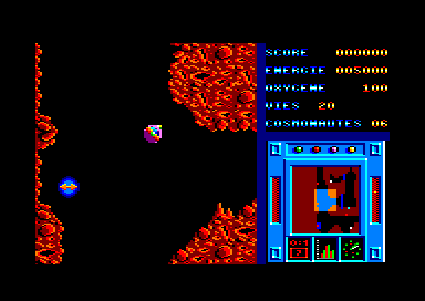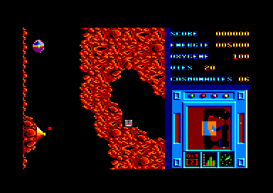 Il est également possible de tirer (avec la navette) sur les personnes. Là aussi, il faut faire preuve de prudence car si un des vôtres est tué, votre score revient à zéro et vous perdez une vie ! Vous l'avez compris, la navette servira, grâce à son laser, à détruire les obstacles et à se déplacer sur de longues distances tandis que le passager avec sa réserve d'oxygène limitée (10 secondes) sera utilisé pour transporter les autres personnages, collecter les disquettes et se servir de l'ordinateur. Ce dernier peut être utilisé pour obtenir la liste des espions. Inertie est un jeu difficile (la preuve : le jeu débute avec 21 vies !) mais très prenant : c'est un futur "hit". AMSTAR n°10 |