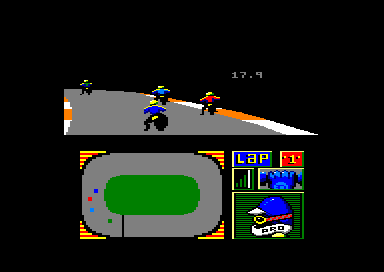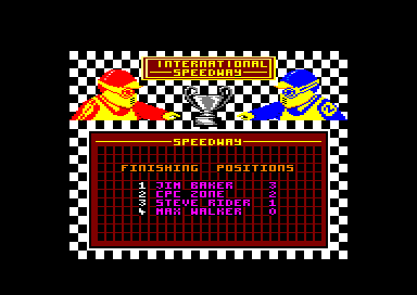 As you zoom away from the starting line you feel the wind whistle around your helmet and the uneveness of the road surface but this is not a simulation of driving along London's roads littered with potholes - it is International Speedway where winning is everything. One thing is certain; you will not be a winner if you pay any more than the asking price. For the budget pnce of £1.99 you get a truly budget game with all the thrills and spills of a hangover. International Speedway puts the player in the position ot a newcomer to the dirt track. You have spent loads-a-money on your new scrambler motor cycle and are confident you can beat the opponents in your local league. At the starting line you rev your two-stroke and wait for the green for go. Green and theu are off. Well, all except you. who just plods along until your cycle has reached running temperature. The upper portion of the screen shows a view of your player on the track as if he were being trailed by a camera. The rest of the display is taken up by a plan view of the race in progress and some useless graphics along-side to fill otherwise empty space. The view of the race gives little impression of speed, especially as the plan view of the oval shows small coloured squares shooting around it at speed, especially as the plan view of the oval shows small coloured squares shooting around it at fantastic speed. I foundmy bike to have no brakes and was puzzled why it slowed automatically when approaching a corner and continued to slow the more you cut into it. Once out of the corner it accelerated to such speed that the straight was almost unnoticeable and the whole race seemed to be constant cornering. Graphically the game is poor, especially seeing how much of the screen is wasted on unused illustrations. The sound effects leave much to be desired and the gameplay was so bonng that I felt I could make some tea without missing anything. The unfortunate thing about many budget titles is thay they are always considered to be worth less development time; so the game appears to have been knocked up in two afternoons. International Speedway is no exception.