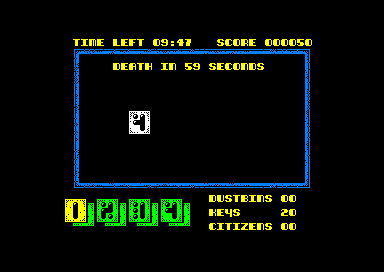 Punks, thugs and muggers rule the streets, and only one man can break their reign of terror. Joe Blade. After all, with a name like that he could hardly be an accountant, could he? (Oh couldn't he? - Joe Blade Esq, accountant, Worthing.) Joe's last adventure was in an embassy siege and he's been dragged out of retirement on a mission to rid the town of the baddies. The display is very similar to the one in Joe Blade, a flick screen street scene with doorways into and out of the screen. Across the bottom of the screen is a row of four icons (numbered one to lour) and counters for dustbins, keys and citizens. Keys are needed to open doors. No longer do you wander around with a machine gun - it's a kick in the head for the bad guys and smile when you say that in this game. Points are scored when you kill a yob, collect a dustbin or deal with a citizen. Citizens are the dubious looking old gentlemen in long coats that stand in the middle of the streets. If you bump into one a puzzle appears that must be solved within a time limit. Solve the puzzle and you have have only 15 more to do. Fail to solve it and the game ends. Graphics are good, but there's little colour used. The animation is good and sound effects are OK. Joe Blade II suffers from the same flaw as Thing (reviewed last issue): lack of pace, though not, admittedly, to the same tedious extent. Solving the puzzles can be very frustrating, but you'll soon be able to do them all. Rescuing all sixteen citizens takes a while, but you could run out of enthusiasm before you solve it. FIRST DAY TARGET: Rescue six citizens GBH, AA
