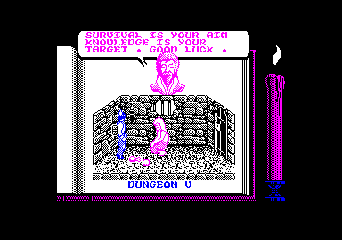 Chevalier perdu dans les oubliettes du château, vous allez d'une part manier votre personnage au joystick, d'autre part sélectionner vos dialogues au clavier. Le but de là quête est simple : survivre à cet univers de cauchemar et donc en Éviter les pièges. L'écran de jeu met en place un graphisme précis bien que peu coloré. Le personnage évolue à l'écran avec souplesse. Il lui suffit alors de se placer devant un indice ou un autre personnage pour utiliser le mode «dialogue.. Le Joueur sélectionne tout d'abord un verbe (soit sur une liste qui défile, soit en frappant l'Initiale du mot...) puis le nom de l'objet concerné. Cette gestion du dialogue avec l'ordinateur est maniable. Elle dévoile, en revanche, tout le vocabulaire du jeu...
