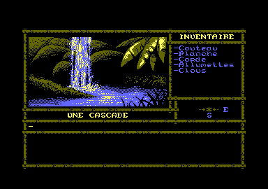 Coté son, c'est toujours des SOUNDs, et loin d'être terribles. A part le bruit des vagues et des cascades, on n'entend pas les moustiques et autres animaux exotiques qui auraient donné une toute autre dimension au jeu. Dommage derechef. Avant de passer à la suite, sans commander ce jeu, il vous faut savoir que les graphismes à eux-seuls rattrapent tous les autres défauts. Une fois de plus, c'est du travail soigné, une utilisation intelligente des trames et des effets de style dignes des plus grands. C'est toujours du mode 1, c'est toujours aussi fin. Bravo Bruno. Et puis, pour vous donner envie d'avoir ce soft, je vous rappellerai qu'il y a d'autres séquences d'action à ne pas manquer... Alors ? SNN, AMSLIVE n°1 , page 19 |