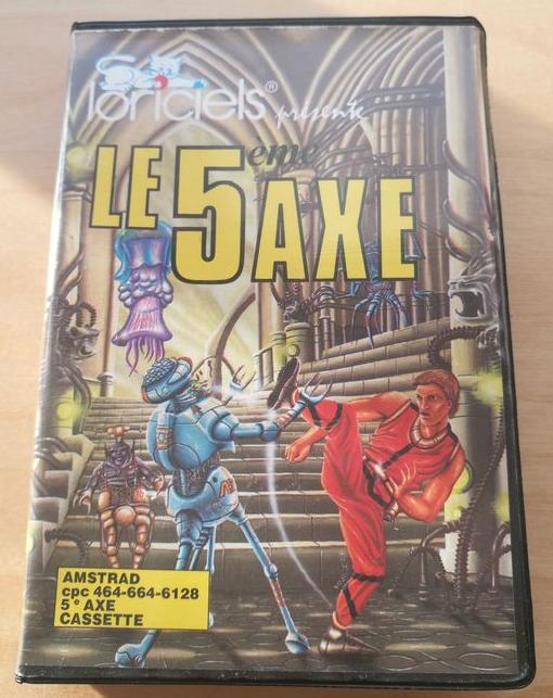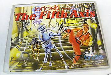 Sur un planétoïde reculé. Gen Dick, savant fou a créé la machine à remonter le temps. Mais ce dernier est souvent capricieux et H.G. Wells, précurseur de l'exploration temporelle en a fait les démonstrations. En fait, Gen Dick a provoqué la désintégration d'une de ces machines et vous avez été choisi pour retrouver les débris projetés dans des temps divers. Votre tâche est compliquée par les Cyborgs. créatures habituellement inoffensives, rendues féroces par la dégradation de la trame temporelle après désintégration. L'Univers tout entier est menacé, saurez-vous combattre et triompher ? Ce logiciel 100 % en langage machine est une belle réussite. Mélangeant aventure (retrouver des objets divers en empruntant les meilleurs itinéraires) et arcade (c'est un plaisir que de manœuvrer cet agile et gracieux "sauveur"). 5e Axe jouit d'un bon scénario. C'est rare. Les pages de présentation vous expliquent le jeu et vous font accéder à des éléments divers d'informations (Article de "Science et Survie", interview de votre psychiatre...). Votre personnage est paramétrable (vitalité, force, agilité...) selon vos désirs. La musique (moderne et originale) qui vous accompagne durant le jeu (possibilité de l'enlever) a clé très soignée. A brancher sur votre Hi-Fi pour en faire des enregistrements pour le plaisir.., L'animation est très réussie (ceux qui ont vu "Mission Impossible" sur Commodore apprécieront). Vous pouvez - et c'est même conseillé avant toute action dangereuse - sauvegarder une partie et la reprendre ensuite. En attendant d'acheter le jeu (absolument), sachez que le 5e Axe en question représente l'axe de probabilité selon lequel il n'existe pas une réalité mais une infinité... Je vous l'avais dit, le scénario (hors arcade) est un joli petit roman de Science Fiction, avançant certaines théories, parfois a la limite de la science et de la philosophie. Je ne sais pas si vous êtes convaincus, mais excusez-moi : j'y retourne !