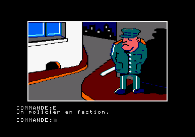 Pendant votre enquête, vous risquez fort de passer par des moments de grogne intense. Réfléchissez à deux fois avant d'insulter l'ordinateur, car il n'y a pas que les murs qui aient des oreilles. Si cela vous arrivait cependant, il faudrait savoir vous faire pardonner pour reprendre le jeu. N'en abusez-pas cependant car malgré toute sa gentillesse, le programme risquerait alors de vous renvoyez à vos pénates, c'est-à-dire au début du jeu. Le dialogue avec l'ordinateur s'effectue de manière classique, verbe plus complément. Une liste du vocabulaire compris par le programme est fournie dans la notice, mais cette liste n'est pas exhaustive, car l'ordinateur est capable de comprendre certains autres mots. L'établissement d'une carte est ici moins capitale que dans d'autres programmes car le nombre de lieux accessibles est restreint. Un bon logiciel d'aventure policière, assez difficile. Jacques Harbonn, TILT |