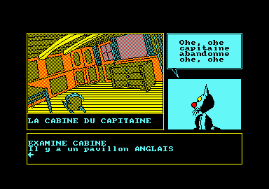 Après de longues heures pendant lesquelles mon état d'esprit est passé alternativement d'euphorique à découragé et vice versa, je découvre qu'il y a une pièce secrète dans la maison de mon oncle et une machine diabolique dans la pièce secrète de la maison de mon oncle et... Je me doute que le plus sûr moyen pour avoir des nouvelles de mon cher "tonton" est sûrement d'utiliser cette machine ; là, j'ai l'impression que vous n'êtes pas complètement convaincu de ma perspicacité... vous avez raison. En fait, j'ai la chance d'avoir l'aide tout à fait incomparable de "Sylvestre" ; mais qui est-ce, celui-là ? Rien qu'un chat. mais quel chai ! Si vous le prenez dans le bon sens du poil, il vous donne de précieuses indications avec juste ce qu'il faut de mystère, d'humour et de familiarité. C'est donc tous les deux que nous commençons le voyage car, arrivé à ce stade, il s'agit bien d'un voyage, mais à travers le temps... A peine avons-nous mis en marche la machine que nous nous retrouvons en l'an 1754, avec un œil en moins et sur les remparts de Saint-Malo (Corsaire oblige !). Qui dit Saint-Malo dit mer et par conséquent... bateau.