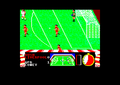 AMSTRAD £9.99 Being an avid supporter of tha Kop, I've been eagarly anticipating the release of the official computer game. Now It's arrived, all I can aay is...deary, deary me, Brian. The boys certainly haven't done good with Liverpool, combining out-rageously poor graphics with unbelievably sluggish gameplay, resulting in a product which doesn't deserve to be in a local pub league, never mind the first division. The players are atrociously designed, the pitch la jerky beyond belief and scrolling is mindnumbingly slow. Controls are unresponsive , players get stuck together when face-to-face. and it's possible to score from some very dodgy positions. And if that a not bad enough, there are some extremely annoying 'features' such as, when the ball is kicked into touch, all the players run away as if the thing were booby-trapped, then several seconds later, a man who's positioned miles away saunters along to take the throw-in. Never before has there been such a travesty in the computer footballing world as Liverpool - The Computer Game; It'a a game of two halves, both of them absolutely dire. GRAPHICS : 21% PAUL RAND , CVG 104 (Jul 1990) |