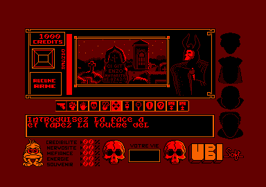 Enquête policière Quoi de plus intriguant, attirant et mystérieux que la belle, la grande Venise ? Fermez les yeux et d'un coup d'imagination, transportez-vous dans cette ville enchanteresse où, comme ici, nous nageons en pleine période de carnaval. A cette époque de l'année, personne ne sort à visage découvert et c'est bien pour cette raison primordiale que vous êtes là ; ainsi, il vous sera plus facile d'accomplir la mission que vous vous êtes fixée...L'espace de quelques secondes, vous revoyez le visage de celle que vous avez tant aimé et qu'"il" ont osé vous enlever à tout jamais ! Mais aujourd'hui, l'heure de la vengeance a sonné !... Devant la société secrète réunie au grand complet, vous avez juré, vous, Enzo, de retrouver le témoin de ce crime sans nom qui a coûté la vie à votre chère et tendre Renata... Après avoir choisi un premier masque, vous commencez vos recherches en vous rendant à la place Santa-Maria. C'est là que se situe la première rencontre... Quel genre de personnage y-a-til derrière ce masque de faucon ? Ami ou ennemi ?... Pour le savoir, vous commencez en douceur en essayant de dialoguer ; malheureusement pour vous, cette personne ne semble pas coopérative pour deux sous... Ni même pour 100 puisque votre essai pour le soudoyer se solde également par un échec... Puisqu'il en est ainsi, aux grands maux les grands remèdes : une droite bien appuyée ! Voilà une méthode qui se révèle efficace !... Du même coup, le "faucon" se retrouve à visage découvert et de plus il se révèle doux comme un agneau. Il ne vous reste plus qu'à le fouiller et si le résultat n'est pas celui escompté, il faudra reprendre les recherches dans un autre coin de Venise...