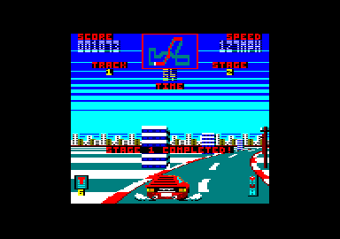 On a completely different lack, get set for some excellent 3D parallax scrolling race action in your two litre Mustang Cobra under the searing Florida sun. You've been challenged to a head to head race and, of course, you can't turn it down. Over eight gruelling levels, each with four stages, it's non stop burning rubber, through mountain ranges, inner city landscapes and tree-lined avenues. On each stage of this marvellously crafted race, you get eight turbo boost charges, to bring you right back to the head of the field if you've had the misfortune to lose control. Getting used to the car may take a little time, but once mastered, it's a joy to play. The graphics are clear, there's a nice soundtrack and. above all. it's fun. Don't miss it. ACU #9104