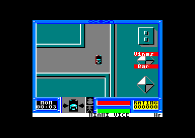 Dans les bouches d'égout se cachent parfois des tueurs qui entameront votre "armure" grâce à leur tir toujours précis. Les véhicules gênants peuvent être "sautés" grâce aux propulseurs à air situés à l'arrière de la moto. Lorsque la police s'approche d'un peu trop près! un message défile, c'est le moment d'utiliser le turbo ! En cas de confrontation directe avec les bandits, vous pouvez leur tirer dessus (1000 points c'est toujours bon à prendre). La suite comprend une: berline noire à abattre puis une Porsche rapide, comme dessert. Le jeu, vu de dessus, ne possède ni des graphismes époustouflants ni des couleurs judicieuses, mais l'on se prend parfois à éprouver de l'intérêt pour cette succession de moto-poursuites.