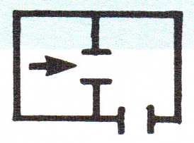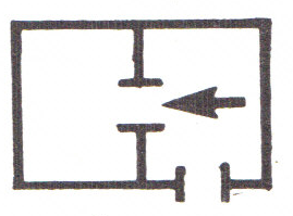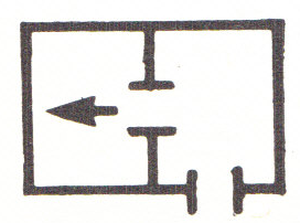 El cambio de orientación dentro de una habitación se consigue presionando < ENTER > (la tecla grande). Cada vez que lo haga girarán 90 grados hacia la derecha. Al igual que antes, lo veremos con un ejemplo gráfico.