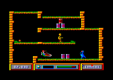 Tiens un soft écolo ! En fait, il est question d'un héros découvrant qu'une planète de son système solaire se transforme lentement en une gigantesque décharge d'ordures. A tel point que les habitants sont obligés de se terrer dans les sous-sols de la planète. Pour remédier à cet état de fait vous vous rendez sur ce monde afin de nettoyer tout cela. Malheureusement la présence de matières radio-actives a entraîné la prolifération de mutants hostiles. Votre arme est capable d'abattre chacun des monstres à condition que ceux-ci soient de la bonne couleur. Mais comme tout cela commence à vous affamer, il est temps de prendre un petit gigot pour vous restaurer. Les graphismes ont quelque chose de déjà vus. C'est normal, ils sont de l'auteur de Billy la Banlieue.