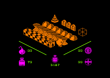 Arcade/Aventure Je vous l'accorde. Molécule man n'est pas un jeu des plus originaux. Le graphisme en pseudo 3D est connu depuis Knight Lore, le personnage central et par là même principal, est une petite boule à pattes. (Remember Pac-Man), les couleurs sont uniformes au fil des écrans et les bruitages restent assez succincts. Tout cela ne donne pas un jeu inoubliable, mais, car il y a un mais doit-on pour les raisons invoquées plus haut vouer ce logiciel aux flammes purificatrices de l'enfer informatique. Je réponds : non. Malgré ses défauts. Molécule man possède quelques atouts : son prix d'abord, plus que raisonnable, et surtout le fait qu'il possède un générateur de labyrinthe. Cela signifie que vous avez la possibilité de créer vos propres pièges et de rendre le parcours quasi impossible à effectuer (le baron Von Masoch trouverait cela fort charmant). De toutes les façons quoique vous fassiez subir au labyrinthe le but restera le même : sortir du dédale pour rejoindre le téléporteur qui représente dans ce jeu le seul abri contre les radiations mortelles vous environnant. A l'aide de pilules glanées ou achetées vous pourrez espérer tenir le coup quelques minutes de plus, mais ne vous faites pas d'illusions, le temps qui s'écoule inexorablement aura le dessus assez rapidement (au début, surtout). Si vous parvenez à trouver des bombes, utilisez-les pour détruire les parties de labyrinthe trop ardues. AMSTAR n°6 |