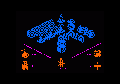 Le programme annexe qui vous permet de créer vous même votre propre labyrinthe rend le jeu encore plus attrayant. En bon masochiste , vous n'hésiterez pas à vous attendre les pièges dans lesquels vous ne manquerez pas de tomber ! Vous disposez pour ce faire d'un choix de quarante-deux objets représentés par des icônes . Le placement des figures sélectionnées s'effectue par positionnement du curseur à l'intérieur de la fenêtre correspondant à une portion du labyrinthe affichée lors du jeu. Le plan général peut aussi être visualisé à tout instant. Durant cette phase de construction, les parcours sont représentés en deux dimensions. Une fois stockés sur cassette, vos labyrinthes pourront être chargés grâce à une option spéciale figurant au menu du jeu. TILT n°35 Oct 86 |
