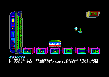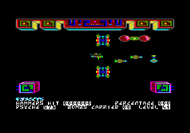 Arcade Nomerraqueous, qu'ont-ils voulu dire par là ? Un coup d'œil sur la page de présentation et tout s'éclaire : " pas sur terre et pas sur mer " mais alors où ? Dans l'espace bien sûr. Ou plus exactement au sein d'une planète éloignée, celle qui se trouve au nord d'Alpha du Centaure, c'est simple : après l'autoroute galactique BW86 vous prenez à gauche, et vous continuez jusqu'aux feux cosmiques. Vous ne pouvez pas vous tromper. Que se passe-t-il donc sur cette planète inconnue ?... Et bien, un puissant et tout vilain ordinateur ( appelons-le Robert pour plus de commodité ) a tout à fait horriblement asservi la population. Quant à vous, vous êtes une espèce de robot fabriqué par le peuple en révolte. Pour une meilleure compréhension de l'intrigue je vous appelerai Alcide, d'ailleurs c'est un nom qui vous va comme un gant. Donc Alcide doit détruire Robert qui est bien caché croyez-moi ! A chaque niveau il y a 3 sections, et le jeu possède 42 niveaux. Dès les premiers tableaux, les ennuis commencent : les gardiens de la base virevoltent et à chaque contact vous privent de points de psyché. (Je ne sais pas ce que cela signifie, mais je vais y réfléchir). A ce propos vous avez plusieurs façons de mourir : soit vous n'avez plus de points de psyché, soit vous percutez un faisceau de protons ou bien vous explosez à la suite du lancement hasardeux de votre bombe.
