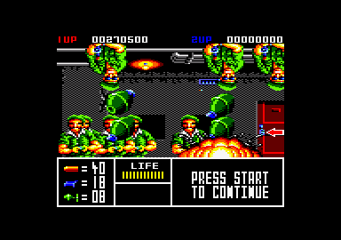 Lorsque des partisans arabes ont détournés le vol 102 vers l'Afrique, ils ne savaient pas encore qu'ils allaient rencontrer Roy Adams, sinon ils auraient fait un grand détour. Vous allez devoir progresser dans un territoire totalement hostile et écraser toute une armée pour parvenir à libérer les malheureux otages. La folle danse que vous entamez va vous entraîner durant 8 niveau. Après avoir rejoint un espion ennemi, vous détruirez un dépôt de munitions puis vous prendrez les commandes d'une jeep. Enfin, à partir du 4ème niveau, vous trouverez les premiers otages qu'il faudra éviter de toucher. Vous avez aimé Opération Wolf ? Vous aimerez Opération Thunderbolt ! Les graphismes et l'animation sont de qualité, l'action est très rapide et, en plus, il est possible de jouer à deux. AMSTAR n°48 Août 1990