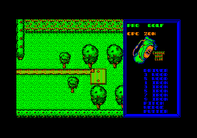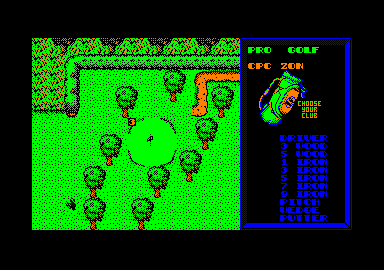 All eighteen holes are on a single course, which can be scrolled around so that you can suss out the lay of the land. It's very much a two-dimensional layout. You have a birds-eye-view of the whole course. The land is made out of various surface features of the type you might expect to find on a golf course. Trees, bunkers, water and of course, lots of grass. Up to four players can join in the fun, taking turns to hack the little white ball around the place. You can choose from a variety of clubs, each having different properties on the ball when it hits it. The terrain too has an effect on the ball, which bounces off trees, gets stuck in sand, and sinks in water. Players take it in turns to hack their way around the course. The control system is easy to master. Choose your club, set your direction, strength and spin, and hit away. The graphics are small but detailed. A jolly tune plays throughout, but fortunately can be turned off. The control system makes the game easy to pick up and fun to play. Tactical decisions take the place of arcade skills, and with a golf-playing chum or two, makes for a hotly-contested hour or so of fun. Adam Waring, AA |
