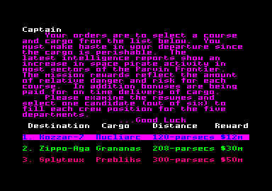 Vous vous retrouvez promu Capitaine d'un cargo de l'espace au fin fond du 35e siècle. Vous devrez approvisionner un nouveau quadrant galactique, Parvin Frontier, pour l'instant affamé par les vaisseaux pirates des Marauders...