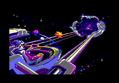 C'est quoi le Purple Saturn Day ? Ben. un jour par an au cours duquel ont lieu des jeux. Huit races participent aux quatre épreuves : la race humaine et sept races extraterrestres, toutes plus hideuses et détestables les unes que les autres. Autant dire que ma première envie a été d'écraser ces vermines. A L'ABORDAGE ! Après un rapide survol de la notice, je choisis le Ring Pursuit qui me semble être l'épreuve la plus facile. Elle consiste à effectuer un tour de Saturne en évitant les astéroïdes qui l'entourent et en slalomant entre des balises de couleur jaune et rouge. Rien de bien méchant en somme. Mon adversaire est aussi de cet avis puisque, dès le départ, ce *#! de robot me laisse planté dans son sillage ! /entame courageusement une lente remontée en évitant la ceinture d'astéroïdes, mais l'animal en profite pour passer allègrement entre les balises et récolter des points. En maîtrisant ma vitesse, je suis pour un court instant en tête de la course. Mais après un parcours chaotique, je franchis la ligne d'arrivée avec une bonne longueur de retard sur mon concurrent, non sans avoir heurté de plein fouet un dernier astéroïde. Woah, la honte ! SLIDER TOI-MEME ! Second jeu, le Tronic Slider, qui se déroule sur une énorme plaque rectangulaire jonchée d'obstacles flottant dans l'espace. Chacun dans notre vaisseau, moi et mon inséparable ennemi devons tirer sur une boule d'énergie qui se déplace dans le rectangle. Si l'un de nous la touche, elle se fragmente. Il nous faut alors passer sur les morceaux d'énergie pour marquer des points. Mon radar m'indique 1 emplacement des fragments et des obstacles. La conduite du vaisseau est géniale : je peux tourner dans tous les sens, faire des demi-tours, accélérer et freiner avec l'aisance et le plaisir d'un nouveau-né qui tète sa mère. La sensation de vitesse est très bien rendue et au bout d'une ligne droite, des faisceaux lumineux arrêtent mon engin avant qu'il ne tombe dans l'espace : rebonds garantis !