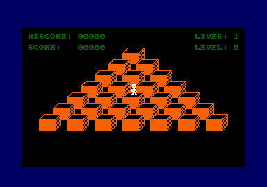 Wann haben Sie das letzte Mal Q-Bert gespielt? Mit dem Programm "Pyramide” können Sie wiedermal so richtig nach Lust und Laune herumhüpfen Nachdem das Basic-Ladeprogramm gestartet wurde, lädt es das Spielprogramm. Danach wird man gefragt, wie viele Leben man wünscht. Diese Anzahl wird bei jedem Neustart vorgegeben. Danach startet das Spiel. Zuerst wird die Pyramide aufgebaut. Anschließend erscheinen im oberen Drittel des Bildschirms vier Worte: HISCORE, SCORE, LIVES und LEVEL. LIVES bezeichnet die Anzahl der verbliebenen Leben (maximal neun). LEVEL gibt an, in welcher Spielstufe man sich befindet. Das Spiel beginnt in LEVEL 0. Der höchste zu erreichende Level ist sieben. Nun kommt vom linken Bildschirmrand das Männchen zur Pyramide, das man mit Hilfe des Joysticks über die Pyramide lenken soll. Hierbei sind nur vier Bewegungsrichtungen möglich: oben links/rechts bzw. unten links/rechts. Ziel des Spiels ist es, jede der Sprungflächen mindestens einmal zu benutzen. Gekennzeichnet werden solche Rächen mit einer Schraffur. Wird eine Fläche angesprungen, die noch nicht benutzt wurde, erhöht sich der Score um eins. Ein Verlassen der Pyramide ist für das Männchen "töt-lich". Dies wird zudem durch ein akustisches Signal, eine Art Knall, deutlich gemacht. Hat man es jedoch geschafft, alle Flächen zu überspringen, gelangt man in den nächsten Level und sieht dort einen Teufel über die Pyramide huschen. Wird dieser berührt, kostet das ein Leben. Die Anzahl der Gegner wächst mit jedem Level. Je nach Geschmack kann die Musik mit der ENTER-Taste an- bzw. ausgestellt werden. Nur das Springgeräusch läßt sich nicht ausstellen. Der Aufbau des Programms Am Anfang des Programms steht der Spritespeicher. Der genaue Aufbau sieht folgendermaßen aus:
