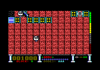 All this assumes a rather special significance, because Rufus has been beamed down on the to planet Killey to collect some crystals. Five, in fact. (Huh - easy!) On all 130 levels (Eek!). The planet surface is a bit treacherous, though. You move from block to block to get to the crystals, but there are gaps to fall through, so watch where you're going. Sometimes there won't be a route round at all - which is why there are special blocks with numbers on. When you step off these into empty space, a new block appears beneath you. The number on the blocks shows how many new blocks you can get out of them. So there's a bit of strategy involved, then? You bet. Because there are lots of rather tricky blocks you've got to know about, too. They can send you flying over gaps, reverse your controls, give you extra ammo, open up and let you fall through, carry you off on a conveyor belt... crikey, it's all a bit much until you've learned what they do. And on top of that you've got these pesky aliens which whizz around, threatening to do you in (ah, so that's what the ammo's for!). You can either dodge these nasties or shoot them (press Fire and then aim with the joystick). Basically, what you've got here is a neat mix of puzzling and arcade action. Sometimes you really do have to think very hard about how you're going to get those crystals. Not easy when you're fighting off horribly alien things that look like mutants from a lego box. Er yes, the graphics are a bit blocky, actually. But they're nice and colourful. It's just a pity they have to chug around as slowly as they do. It makes the whole control method i (keyboard or joystick) dodgy and vague, which is the last thing you want when you're trying to dodge/shoot enemies. The sound is... well, pretty normal really. There's a jolly tune to listen to (which you get a bit tired of after about a million plays) and some OK sound effects. Well, they tell you when you've scored a bonus or shot something, anyway. Reckless Rufus is a rather good little puzzle game. Fighting off the monsters is frustrating rather than challenging, but it keeps you on your toes. And it's a huge game, too. How huge? Well, there are 130 screens (with passwords every ten levels, just to cut down on the frustration a bit), and between them they take up both sides of the tape (the second half of the game has to be loaded from side 2). That's big. On top of that, some of those screens are so weird and tough that they're almost games in themselves. In terms of playing time per pound, Reckless Rufus is stupidly good value for money. RATING: 83% AA |