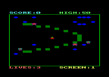 NOT content with the scalps of many a sorry Weevil, Robot Ron goes in search of greater excitement and danger. He stumbles into a huge ice maze inhabited by extremely dangerous super pink furry monsters - just what he was looking for. Unfortunately in the extreme cold of this region Ron's trusty zap gun will not function, so he has to rely on his immense strength to push ice blocks over passing ice monsters. Any keys or the joystick can be used to control Ron. You define the keys which suit you best by choosing option 4 on the menu. However the movement keys are set to the following when the program is first run:
